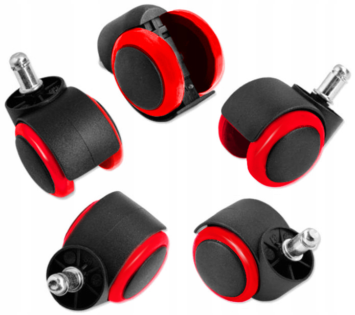 Kółka gumowe pasują do większości standardowych foteli gabinetowych oraz krzeseł biurowych.